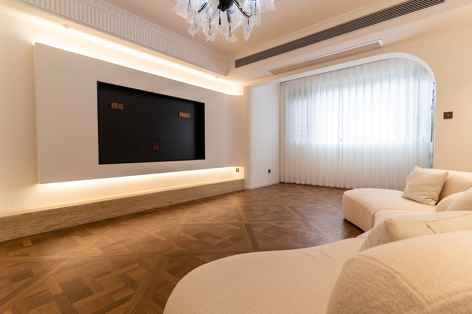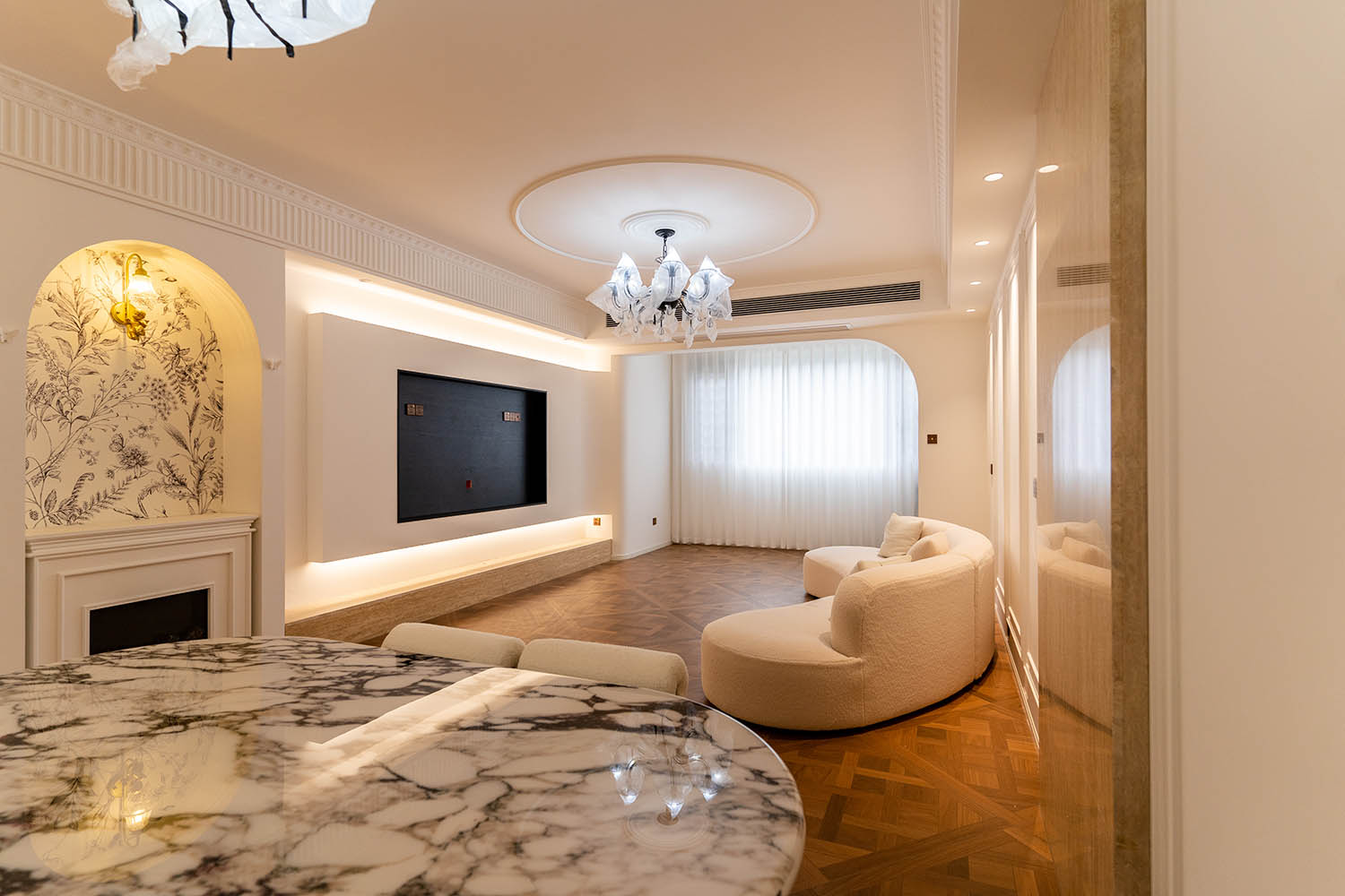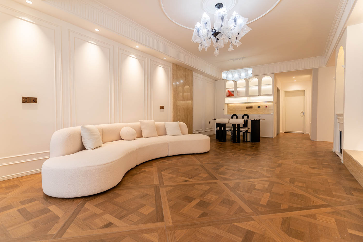 法式风格以其优雅的线条、精致的细节和浪漫的氛围,成为高端家居设计的经典选择。它巧妙地将古典美学与现代生活需求相结合,创造出既有艺术感又实用舒适的居住环境。 对于133平米的户型,法式风格能充分发挥空间优势,通过对称布局、精致雕花和优雅配色,打造出充满贵族气质与艺术氛围的理想居所。 设计理念与空间基调 玫瑰御园133平米法式风格的核心在于营造 “优雅、浪漫、精致” 的生活氛围。整体空间以浅色调为基底,采用米白、香草色、浅灰等优雅色调作为主调,为空间奠定明亮高雅的基调。