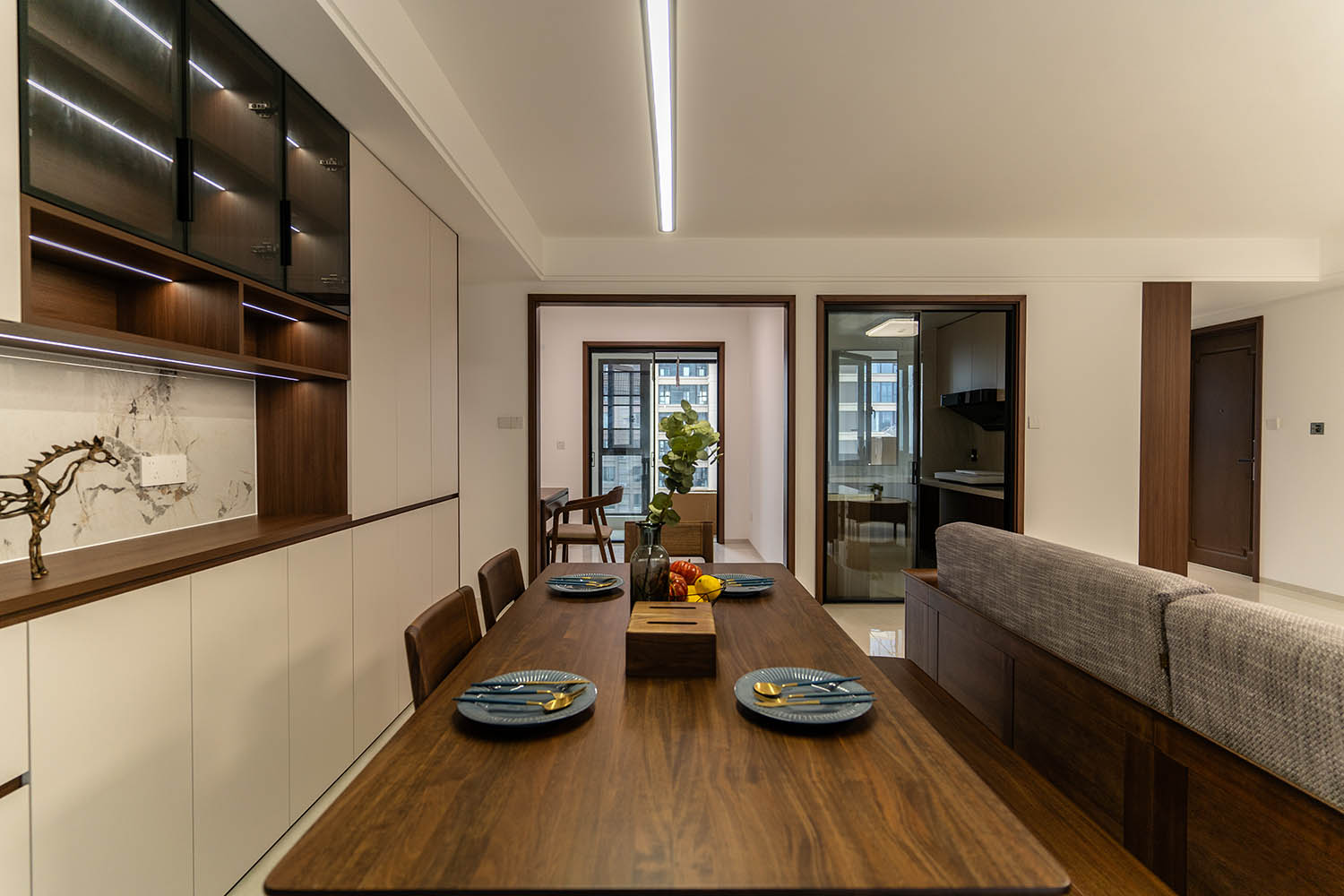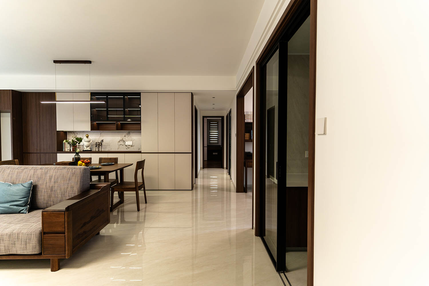 东方之神,舍传统之形,让古典美学在现代空间中焕发新生 新中式风格以其典雅的气质、深厚的文化底蕴和现代的舒适性,成为高端家居设计的首选。它巧妙地将中国传统元素与现代生活需求相融合,创造出既有东方韵味又符合当代审美的居住环境。 对于142平米的户型,新中式风格能充分发挥空间优势,通过对称布局、留白艺术和精致细节,打造出充满文化底蕴与现代舒适的理想居所。 新中式风格在建发央著142平的空间中,成功实现了传统文化与现代生活的对话。它不仅仅是对古典元素的简单复制,更是对东方美学的当代诠释,让居住者在现代舒适中感受传统文化的魅力。 设计精髓在于对文化符号的精准提炼、对空间意境的营造和对现代生活需求的满足。只有经过如此深思熟虑的设计,才能打造出既有文化底蕴又符合当代生活需求的理想居所。