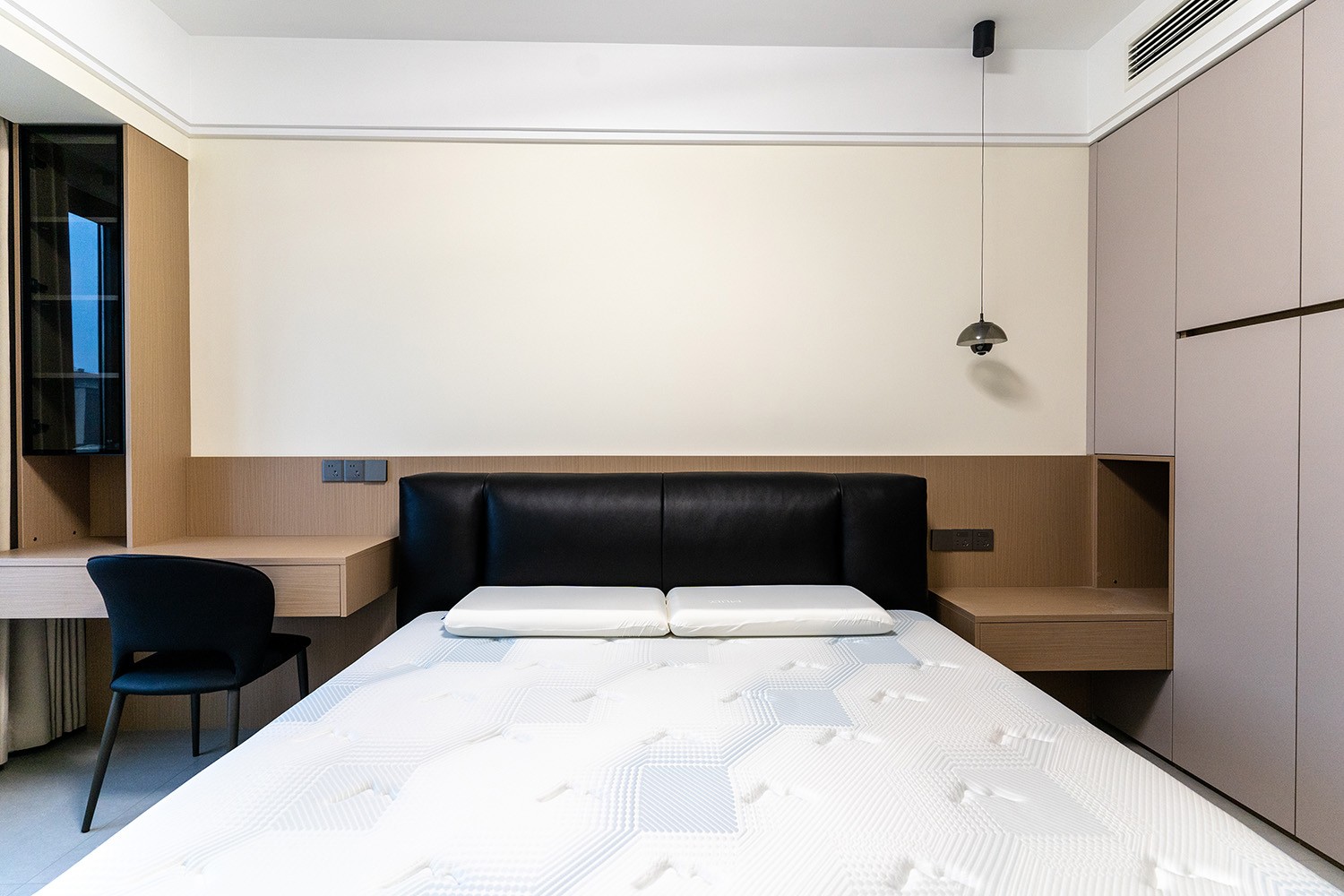 设计理念:定制化效率,沉浸式舒适 本案的核心设计理念是 “功能为纲,体验为魂” 。旨在将115平米的空间视为一个高效运转的精工系统。设计摒弃一切非必要的装饰,将每一寸面积都转化为提升居住品质的有效价值。通过科学动线、模块化收纳与智能人居的考量,为居者量身打造一个在视觉上极度清爽、在使用上极致便捷、在感受上无比放松的沉浸式居住体验。
