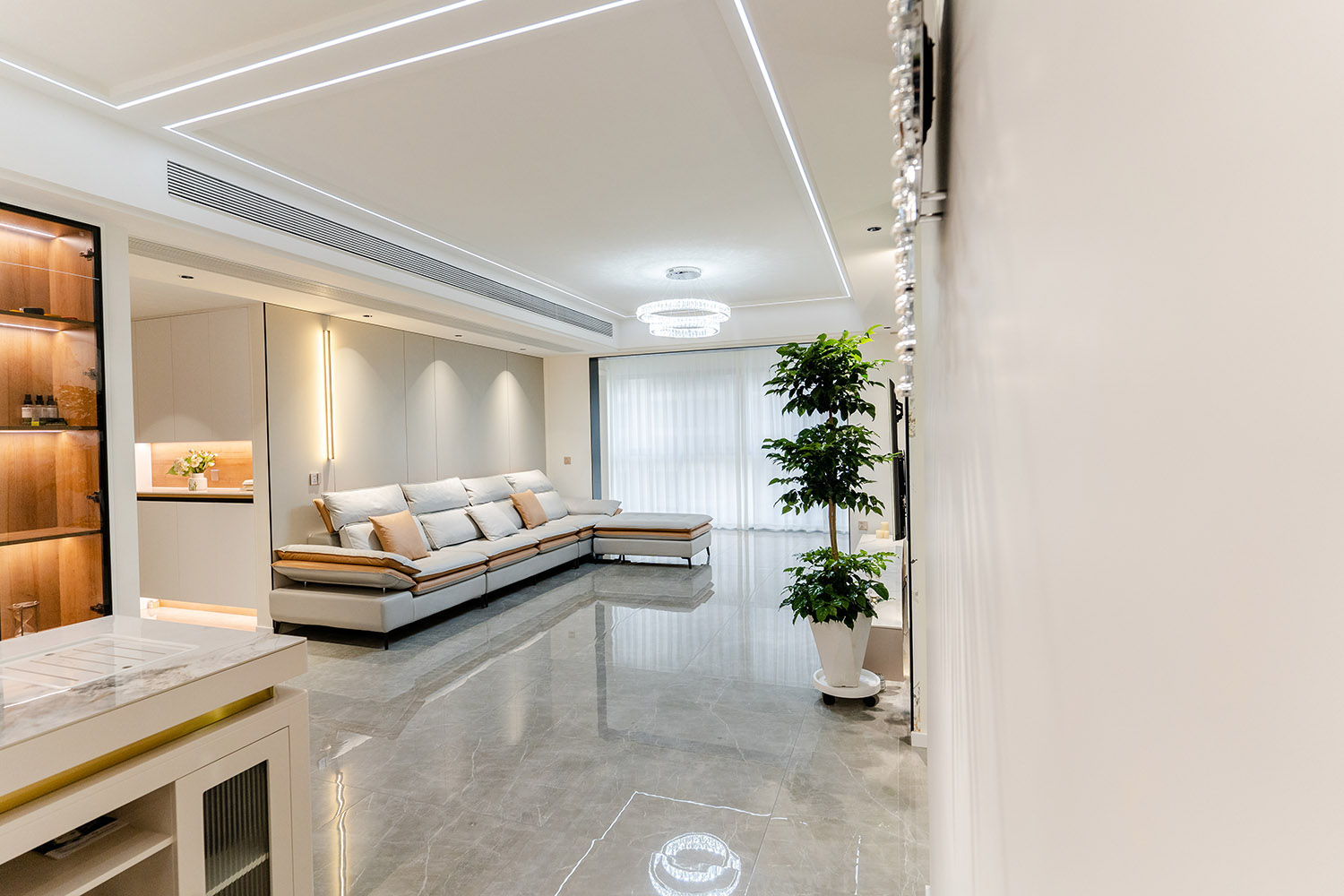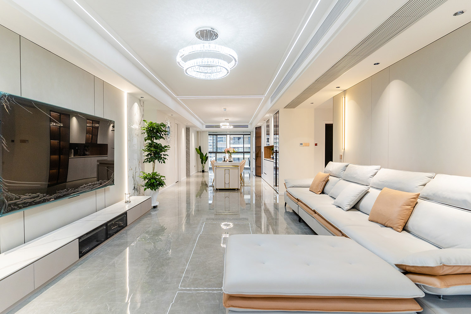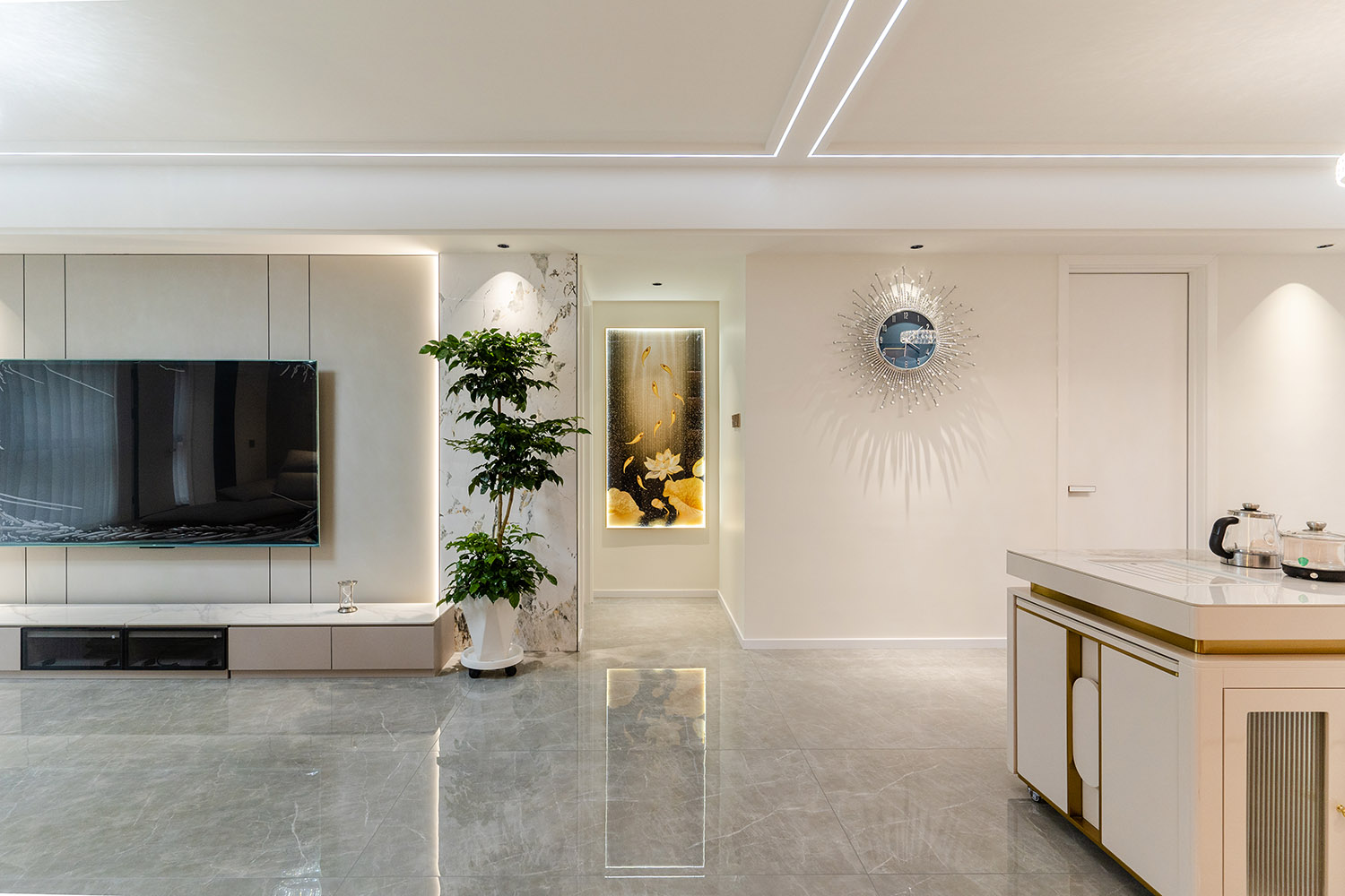 本案以“城市艺术藏品馆”为设计母题,在178㎡的大平层中,用建筑思维构筑生活场景。设计超越传统轻奢的材质堆叠,转向空间叙事性的营造——将每个功能区域视为一个“展陈空间”,居住者的生活轨迹、情感记忆与审美偏好,成为空间中最珍贵的“藏品”。通过纵轴递进的仪式动线、材质光影的戏剧化处理,打造一处兼具美术馆般高级感与家庭温度的诗意栖居。 本案的轻奢,是对空间、光影与生活方式的精细雕刻。它不再是一种风格标签,而是一种生活状态的呈现:在理性的建筑框架中,注入感性的艺术灵魂;在克制的设计语言下,包容丰盈的日常情感。最终,这里不仅是一个家,更是一个能安放身体、精神与时光的“私人美术馆”。