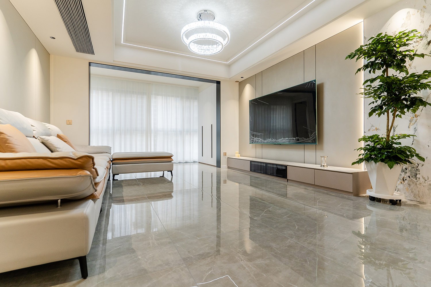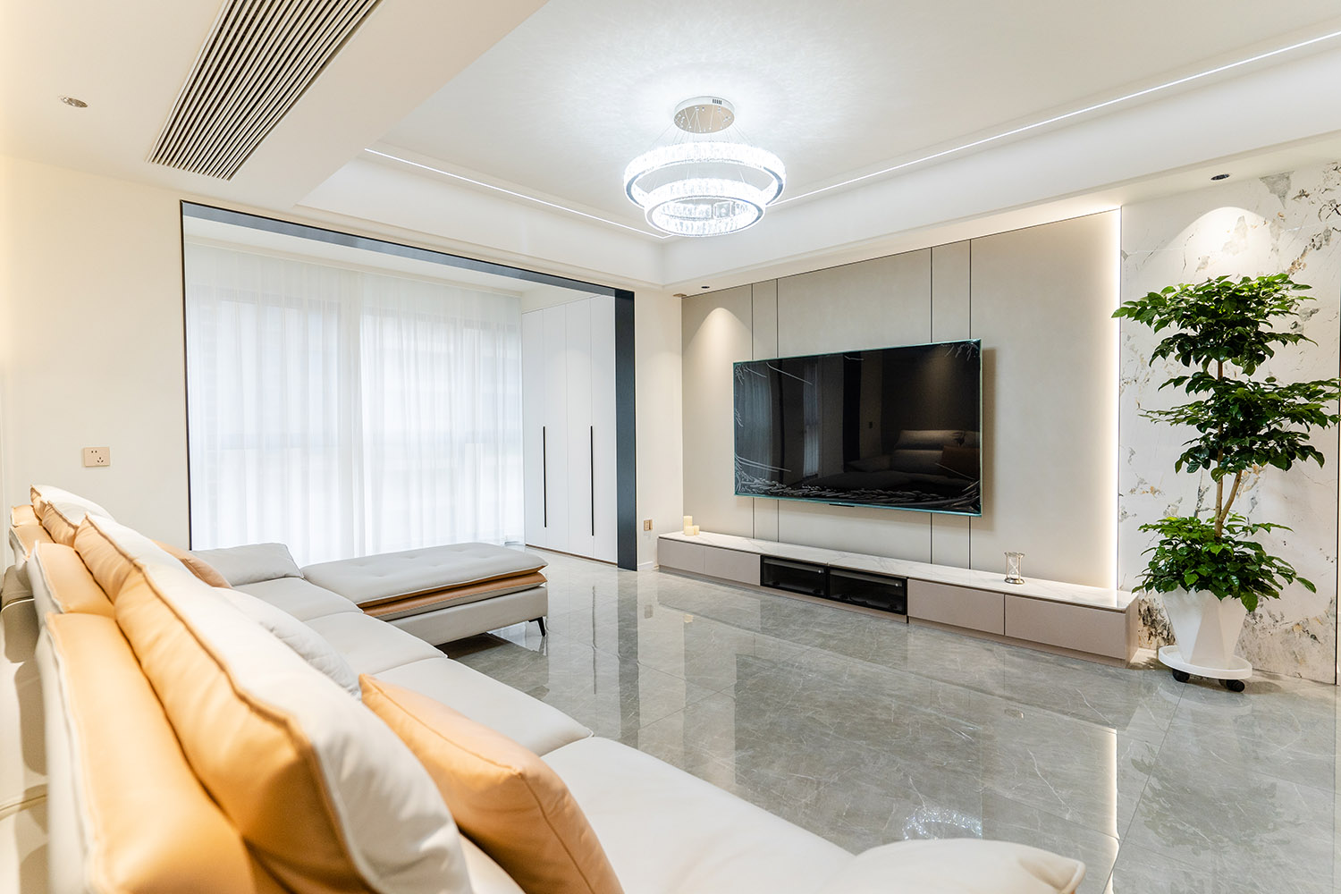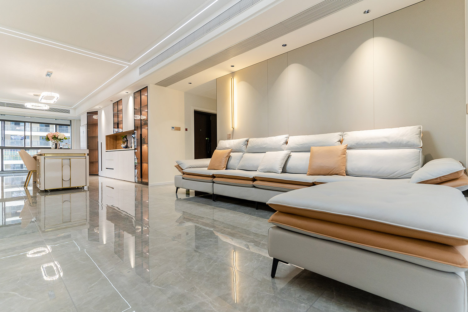 本案以“城市艺术藏品馆”为设计母题,在178㎡的大平层中,用建筑思维构筑生活场景。设计超越传统轻奢的材质堆叠,转向空间叙事性的营造——将每个功能区域视为一个“展陈空间”,居住者的生活轨迹、情感记忆与审美偏好,成为空间中最珍贵的“藏品”。通过纵轴递进的仪式动线、材质光影的戏剧化处理,打造一处兼具美术馆般高级感与家庭温度的诗意栖居。 本案的轻奢,是对空间、光影与生活方式的精细雕刻。它不再是一种风格标签,而是一种生活状态的呈现:在理性的建筑框架中,注入感性的艺术灵魂;在克制的设计语言下,包容丰盈的日常情感。最终,这里不仅是一个家,更是一个能安放身体、精神与时光的“私人美术馆”。