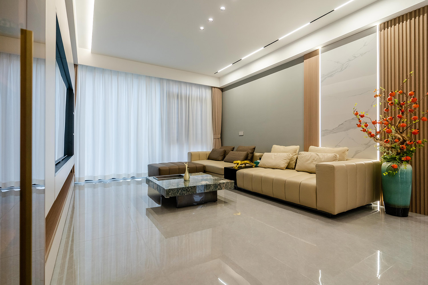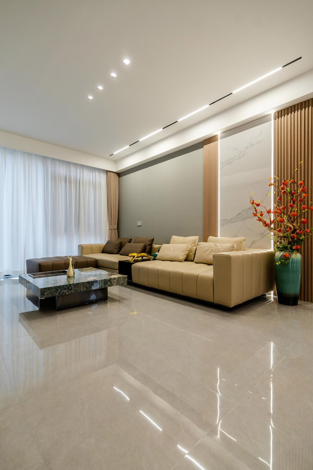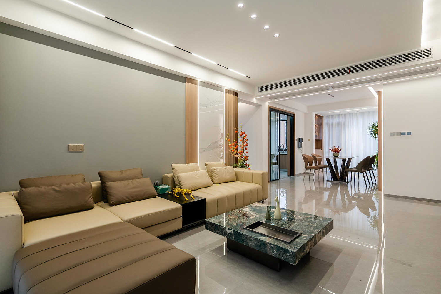 现代轻奢风格,是在简洁的现代框架上,通过精致的细节与克制的华丽,构筑出理性与感性并存的居住美学。在139平米的空间里,它能将功能主义的实用与轻奢主义的优雅完美结合,打造一个兼具都市效率、家庭温度与圈层品位的精致居所。 本案的核心设计理念是 “奢于细节,雅于克制” 。它建立在现代主义坚实的功能与结构基础之上,通过材质、色彩与光影的精细化点缀,赋予空间内在的温度与外在的辨识度。设计旨在营造一种“低调的瞩目感”,让奢华不流于表面,而是内化于每一处精良的用料、精准的比例与舒适的体验之中。