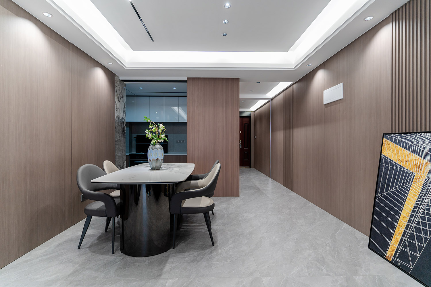设计理念:奢于细节,简于形式 本案的核心设计理念是 “低调的奢华” 。它追求的不是形式的炫耀,而是内在品质的极致呈现。设计通过对材质本身的深刻理解、对光影的艺术化塑造以及对功能的无痕整合,在每一处细节中注入奢华感。最终,空间呈现出一种静谧的力量感,让居者在日常点滴中,都能感受到被顶级品质包围的从容与优雅。 意式极简风格,是理性美学与奢适生活的完美统一。它剥离了多余的装饰,通过精炼的线条、顶级的材质与严谨的比例,构筑一个兼具冷静气场与温润触感的居住空间。本案以亿都随园128平方米的户型为载体,深度解析如何在适中面积内,将意式的优雅基因与极简的现代精神相融合,打造一个彰显国际品味与生活质感的精致居所。