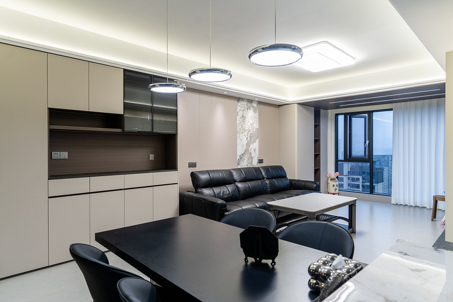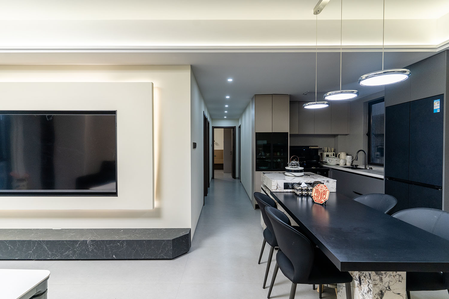 株洲建发央著115平米现代风格,以 “功能为纲,体验为魂” 为核心设计理念,将空间视为一个高效运转的精工系统。设计摒弃一切非必要的装饰,将每一寸面积都转化为提升居住品质的有效价值,通过科学动线、模块化收纳与智能人居的考量,为居者量身打造一个在视觉上极度清爽、在使用上极致便捷、在感受上无比放松的沉浸式居住体验。 本案的核心理念在于 “定制化效率,沉浸式舒适” 。现代风格强调功能与形式的统一,在115平米的三居室空间中,设计师以“少即是多”为原则,通过极简的线条、克制的色彩和纯粹的材料,打造一个干净、通透且富有高级感的居住空间,满足都市精英对高效、舒适生活的追求。 株洲建发央著115平米现代风格空间,通过对功能、材质、光影和收纳的精准把控,实现了“功能为纲,体验为魂”的设计理想。用几何切割光影,用反差唤醒空间灵魂,每一处设计都在回应着现代家庭对品质、舒适与美学的多重需求。 褪去浮华,回归本真。在黑白灰的底色里,一盏暖调落地灯是深夜的陪伴,一株绿植是呼吸的自然注解,灰调沙发上的褶皱藏着生活的温度。克制,是为了让真正重要的事物发光。 当脚步的回声被墙壁温柔包裹,那些刻意保留的留白,恰是造景。现代之境,是对生活本真的追寻,是对内心宁静的向往——让我们在快节奏的都市生活中,寻得一片可以放慢脚步、沉淀心灵的净土,感受生活最纯粹的美好。 这不仅仅是一个居住空间,更是一个能够承载日常诗意、安放生活想象的精工范本。在理性的空间秩序中,谱写出感性的生活诗篇。