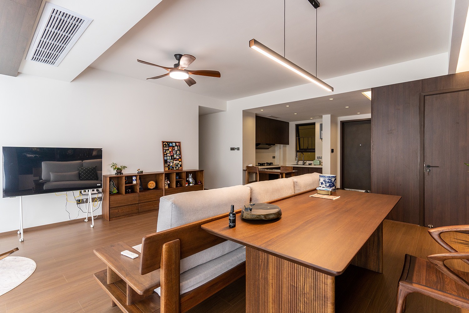 株洲东鼎紫园114平米中古风格,以 “温润复古,简而有韵” 为核心设计理念。中古风(Mid-Century Modern)诞生于20世纪中期,以其简约的线条、自然的材质和功能至上的精神,至今仍被奉为经典。本案将这一风格精髓与现代居住需求相融合,在114平米的三居室中,通过温润的木色、复古的线条、柔软的织物以及恰到好处的留白,打造一个既有岁月沉淀感、又不失轻盈舒适的居家空间。 中古风不是简单的怀旧,而是对经典设计语言的致敬。它追求“连接”——连接自然、连接生活、连接时间。本案以此为出发点,摒弃繁复的雕饰,以柚木色、藤编、人字拼木地板、皮质家具等元素,还原一个充满故事感与松弛感的家。每一处细节都传递着温暖与治愈力,让居者在快节奏的都市生活中,拥有一处可以慢下来、静下来的精神角落。 株洲东鼎紫园114平米中古风格空间,通过对材质、色彩、光影和细节的精准把控,实现了“温润复古,简而有韵”的设计理想。它以柚木的温润、藤编的质朴、皮质的舒适和暖光的柔和,构筑一个既有岁月沉淀感、又不失现代生活便利的居家空间。 中古风不是对过去的复制,而是对经典设计精神的当代诠释。在这里,每一件家具都仿佛带着故事,每一束光线都透着温柔,让家成为抚慰心灵、安放时光的诗意栖居。 在株洲这座充满活力的城市,选择家博整装这样深耕本土、专业专注的装修公司,让专业的团队为您打造一个兼具复古格调与现代舒适的理想居所。让每一天的日常,都成为与经典对话的温暖时光。