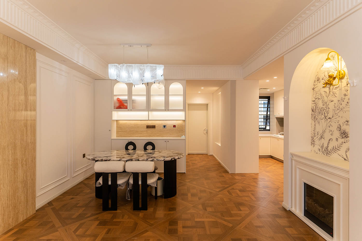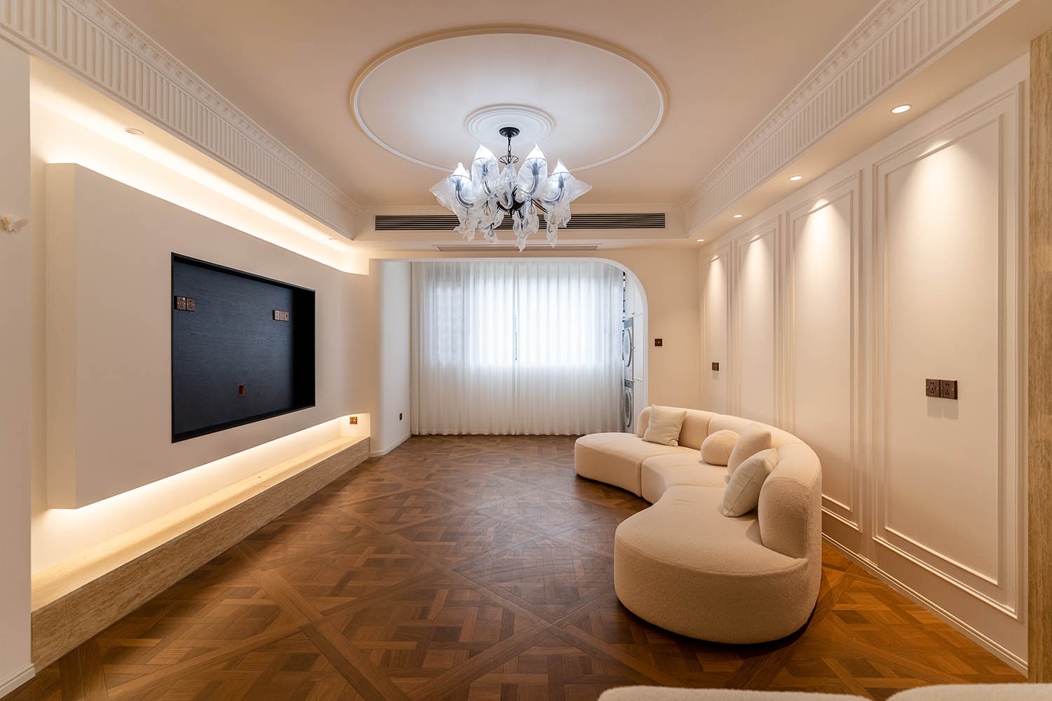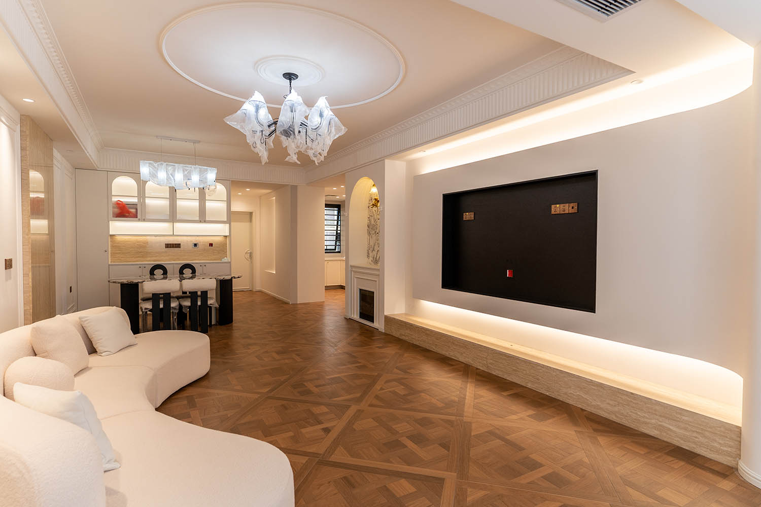 法式风格以其优雅的线条、精致的细节和浪漫的氛围,成为高端家居设计的经典选择。它巧妙地将古典美学与现代生活需求相结合,创造出既有艺术感又实用舒适的居住环境。 对于133平米的户型,法式风格能充分发挥空间优势,通过对称布局、精致雕花和优雅配色,打造出充满贵族气质与艺术氛围的理想居所。 设计理念与空间基调 玫瑰御园133平米法式风格的核心在于营造 “优雅、浪漫、精致” 的生活氛围。整体空间以浅色调为基底,采用米白、香草色、浅灰等优雅色调作为主调,为空间奠定明亮高雅的基调。