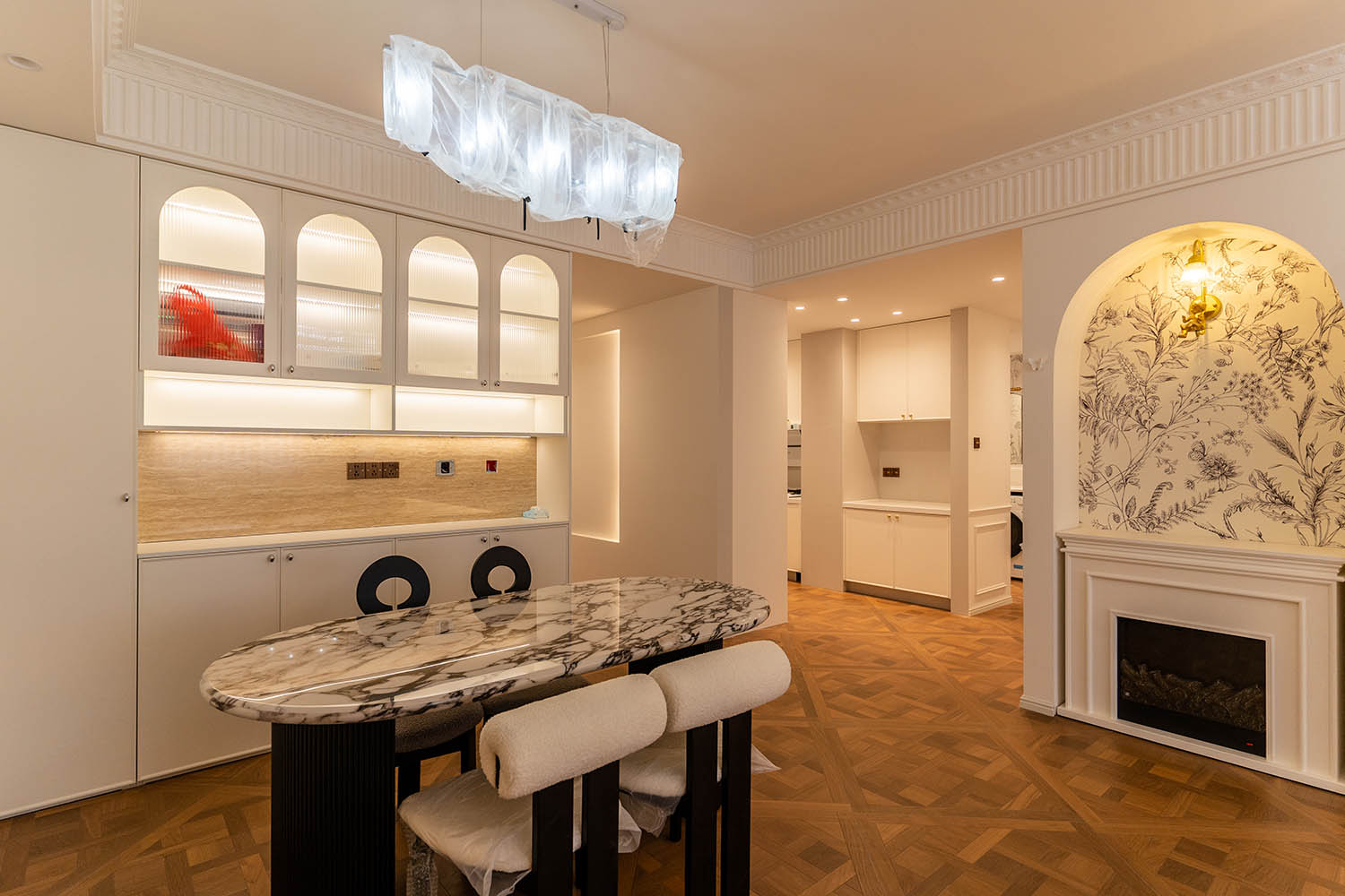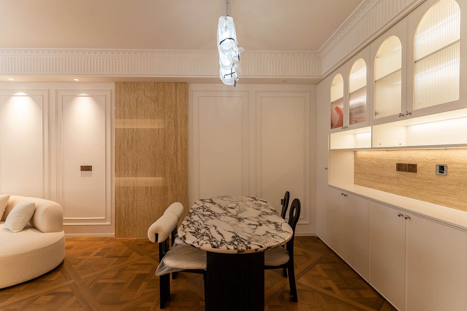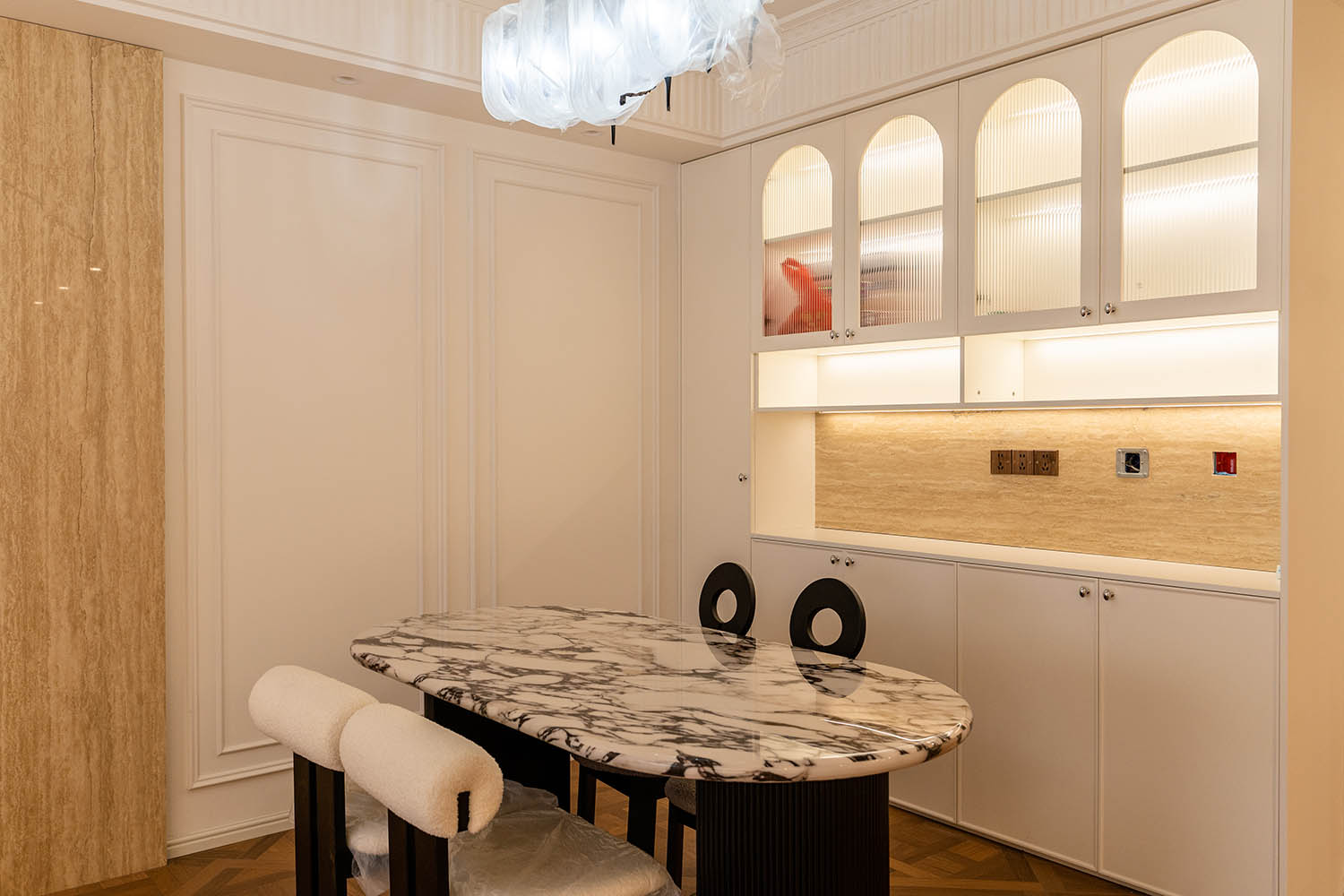 法式风格以其优雅的线条、精致的细节和浪漫的氛围,成为高端家居设计的经典选择。它巧妙地将古典美学与现代生活需求相结合,创造出既有艺术感又实用舒适的居住环境。 对于133平米的户型,法式风格能充分发挥空间优势,通过对称布局、精致雕花和优雅配色,打造出充满贵族气质与艺术氛围的理想居所。 设计理念与空间基调 玫瑰御园133平米法式风格的核心在于营造 “优雅、浪漫、精致” 的生活氛围。整体空间以浅色调为基底,采用米白、香草色、浅灰等优雅色调作为主调,为空间奠定明亮高雅的基调。