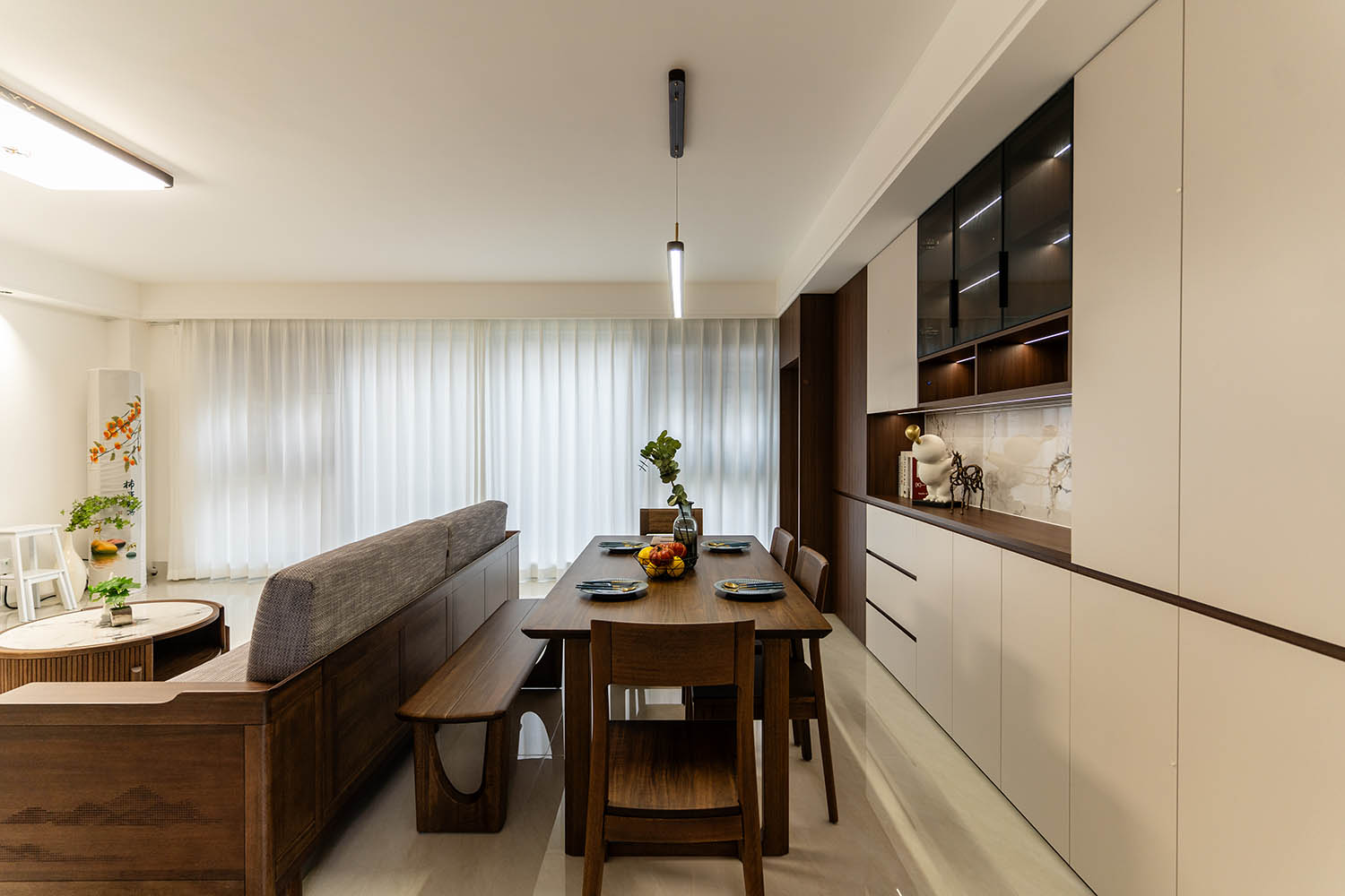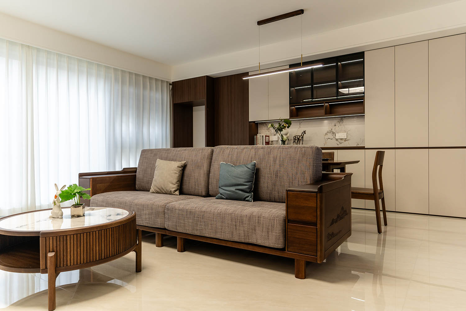 东方之神,舍传统之形,让古典美学在现代空间中焕发新生 新中式风格以其典雅的气质、深厚的文化底蕴和现代的舒适性,成为高端家居设计的首选。它巧妙地将中国传统元素与现代生活需求相融合,创造出既有东方韵味又符合当代审美的居住环境。 对于142平米的户型,新中式风格能充分发挥空间优势,通过对称布局、留白艺术和精致细节,打造出充满文化底蕴与现代舒适的理想居所。 新中式风格在建发央著142平的空间中,成功实现了传统文化与现代生活的对话。它不仅仅是对古典元素的简单复制,更是对东方美学的当代诠释,让居住者在现代舒适中感受传统文化的魅力。 设计精髓在于对文化符号的精准提炼、对空间意境的营造和对现代生活需求的满足。只有经过如此深思熟虑的设计,才能打造出既有文化底蕴又符合当代生活需求的理想居所。