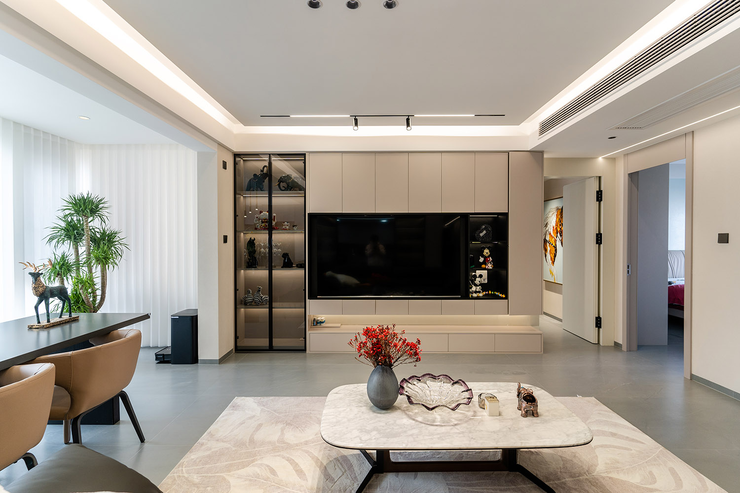 简构生活,奢于本质 本案的核心设计理念是 “功能显性,装饰隐性” 。设计追求一种“去设计师化”的纯净状态,将所有复杂的思考与工艺藏于简洁的表象之下。空间本身被视为一个功能容器与精神容器,通过极致的收纳整合、无障碍的动线规划与柔和的感官体验,让居住者的生活本身成为空间最美的风景。