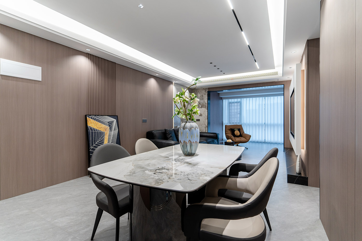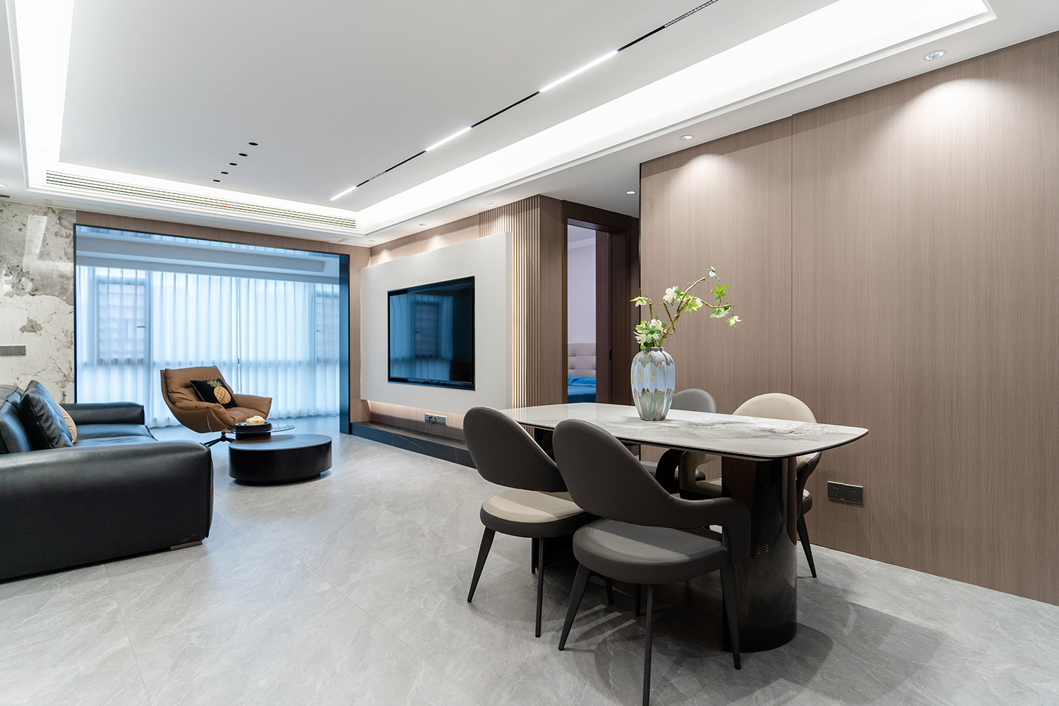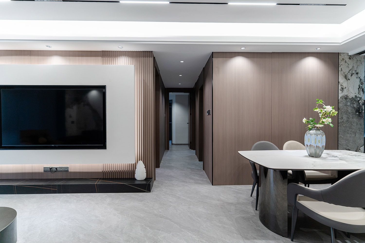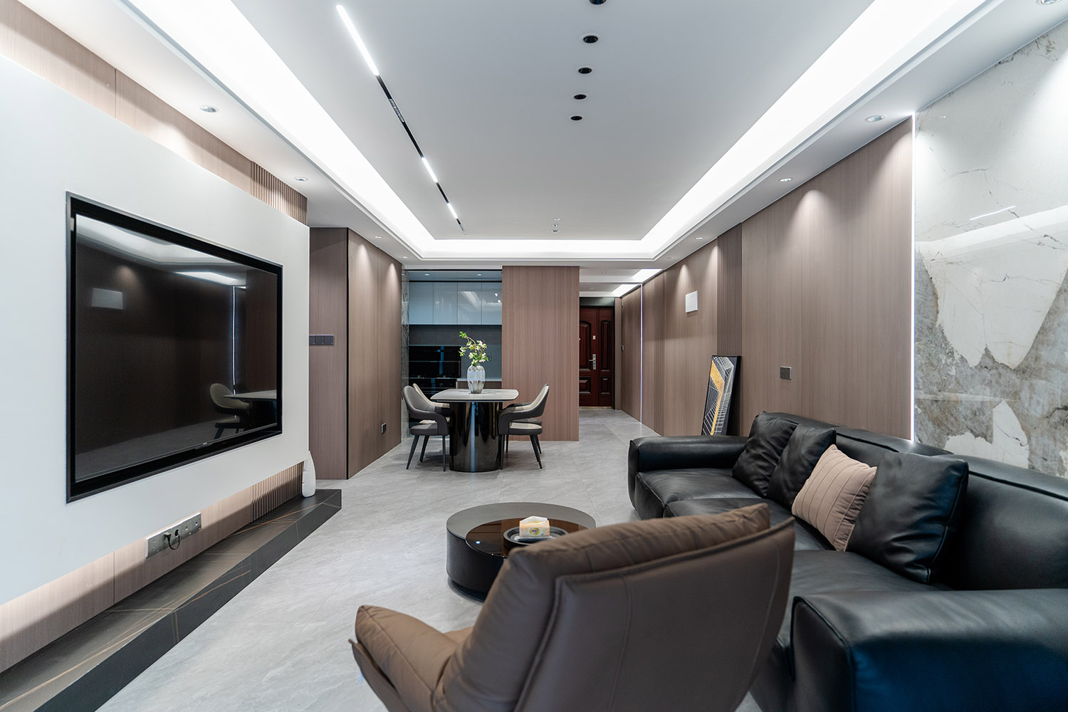 设计理念:奢于细节,简于形式 本案的核心设计理念是 “低调的奢华” 。它追求的不是形式的炫耀,而是内在品质的极致呈现。设计通过对材质本身的深刻理解、对光影的艺术化塑造以及对功能的无痕整合,在每一处细节中注入奢华感。最终,空间呈现出一种静谧的力量感,让居者在日常点滴中,都能感受到被顶级品质包围的从容与优雅。 意式极简风格,是理性美学与奢适生活的完美统一。它剥离了多余的装饰,通过精炼的线条、顶级的材质与严谨的比例,构筑一个兼具冷静气场与温润触感的居住空间。本案以亿都随园128平方米的户型为载体,深度解析如何在适中面积内,将意式的优雅基因与极简的现代精神相融合,打造一个彰显国际品味与生活质感的精致居所。