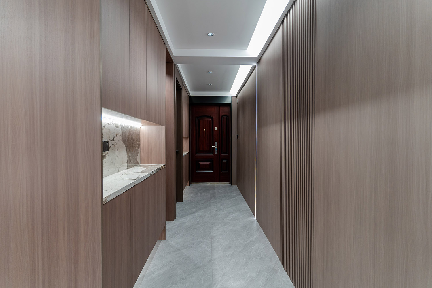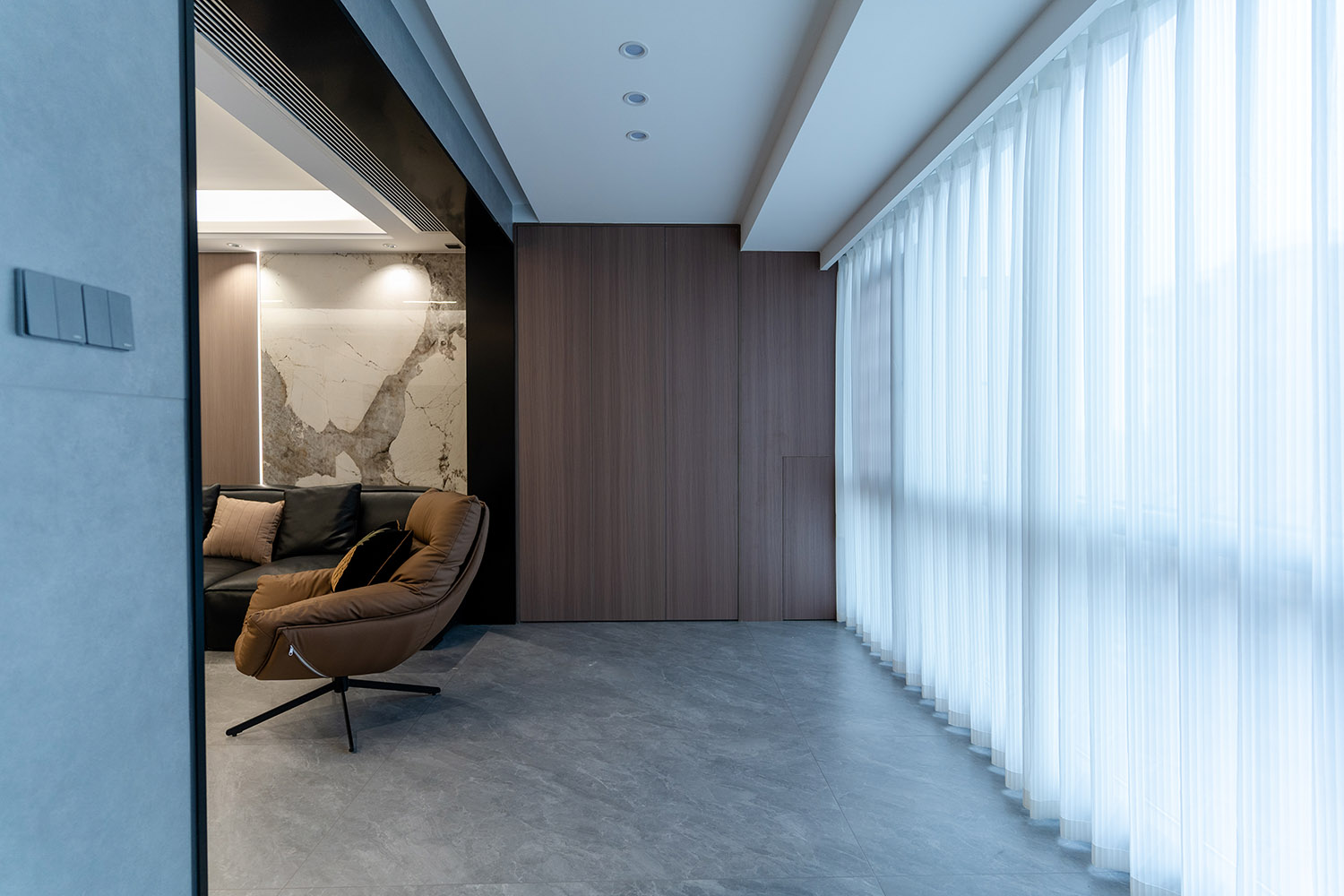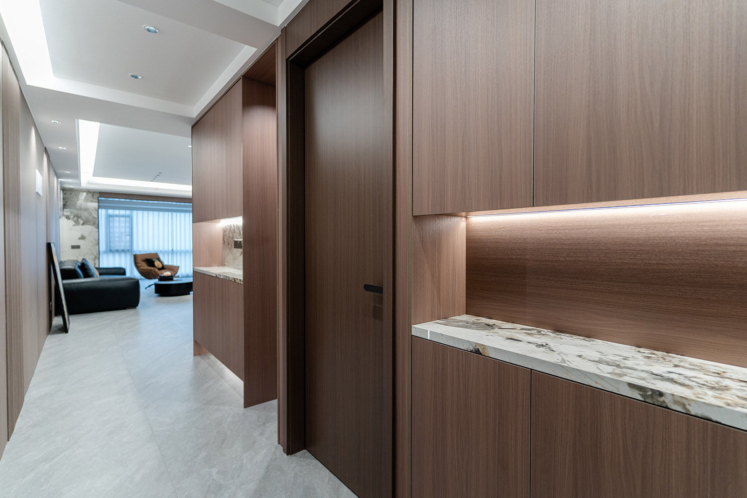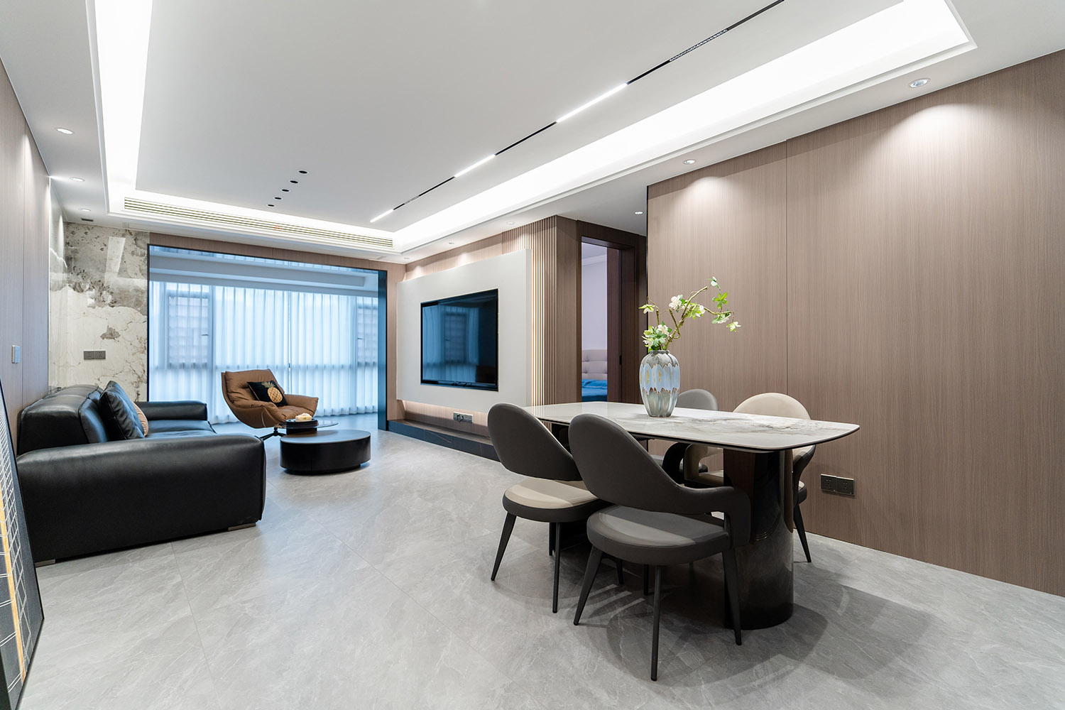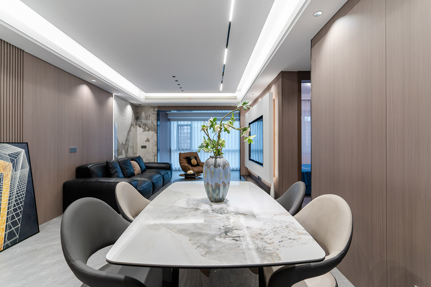 设计理念:奢于细节,简于形式 本案的核心设计理念是 “低调的奢华” 。它追求的不是形式的炫耀,而是内在品质的极致呈现。设计通过对材质本身的深刻理解、对光影的艺术化塑造以及对功能的无痕整合,在每一处细节中注入奢华感。最终,空间呈现出一种静谧的力量感,让居者在日常点滴中,都能感受到被顶级品质包围的从容与优雅。 意式极简风格,是理性美学与奢适生活的完美统一。它剥离了多余的装饰,通过精炼的线条、顶级的材质与严谨的比例,构筑一个兼具冷静气场与温润触感的居住空间。本案以亿都随园128平方米的户型为载体,深度解析如何在适中面积内,将意式的优雅基因与极简的现代精神相融合,打造一个彰显国际品味与生活质感的精致居所。
