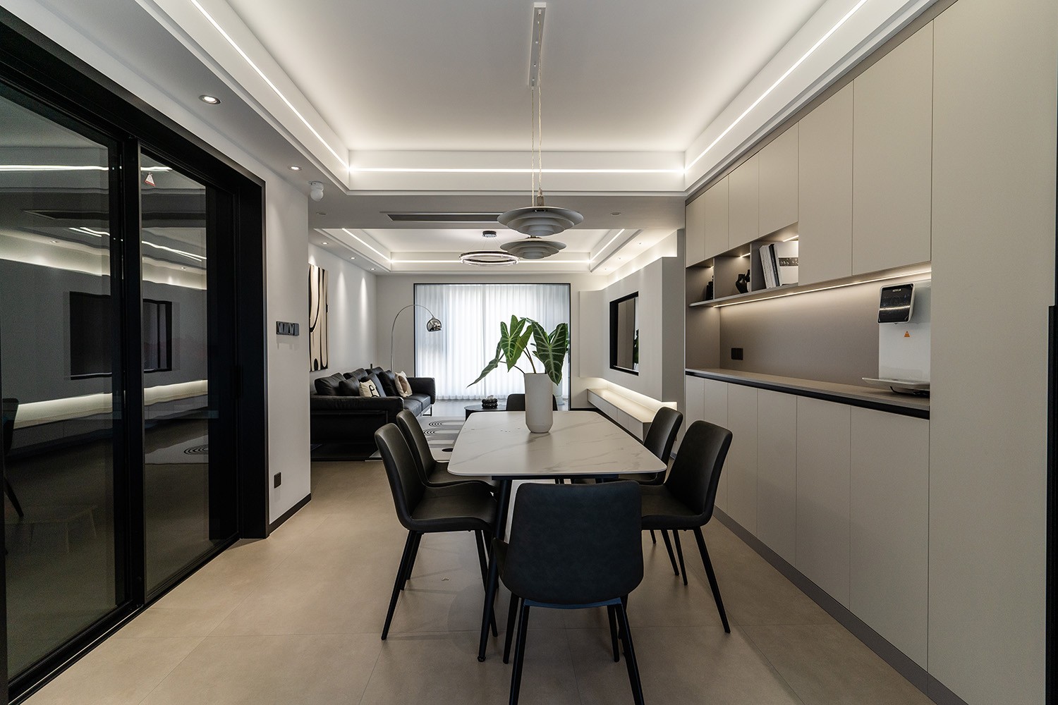 株洲铂悦府122平米现代简约风格,以 “删繁就简,回归本真” 为核心设计理念。在122平米的三居室中,设计剥离了所有多余的装饰,专注于空间的实用性与居住者的情感需求,通过简洁的线条、克制的色彩与通透的材质,打造一个既能承载家庭温暖、又能安放个体独处的理想居所。现代简约风格并非简单的“减少”,而是经过深思熟虑后的精准表达——每一处设计都有其存在的意义,每一寸空间都被赋予明确的用途。 本案的设计旨在为都市精英家庭构筑一处可以卸下疲惫、从容生活的精神港湾。从入户玄关开始,流畅的动线、温暖的光线与大面积的留白交织出治愈人心的空间氛围。设计注重收纳的隐形化、功能的复合化以及细节的精致化,让居者在日常点滴中都能感受到设计的人文关怀与品质的温情力量。 株洲铂悦府122平米现代简约空间,通过对功能、材质、光影和细节的精准把控,实现了“删繁就简,回归本真”的设计理想。它以简洁的线条勾勒都市生活的从容,以克制的色彩营造沉稳通透的氛围,让家成为能够卸下疲惫、放松身心的治愈港湾。 现代简约不是简单的“少”,而是经过深思熟虑后的精准表达——每一处收纳都恰到好处,每一束光线都经过计算,每一种材质都发挥其最大价值。在这里,生活的质感不再依赖于繁复的装饰,而是源自于空间本身带来的舒适与宁静。一套干净清爽的家,容得下柴米油盐的琐碎,也装得下诗与远方的想象。