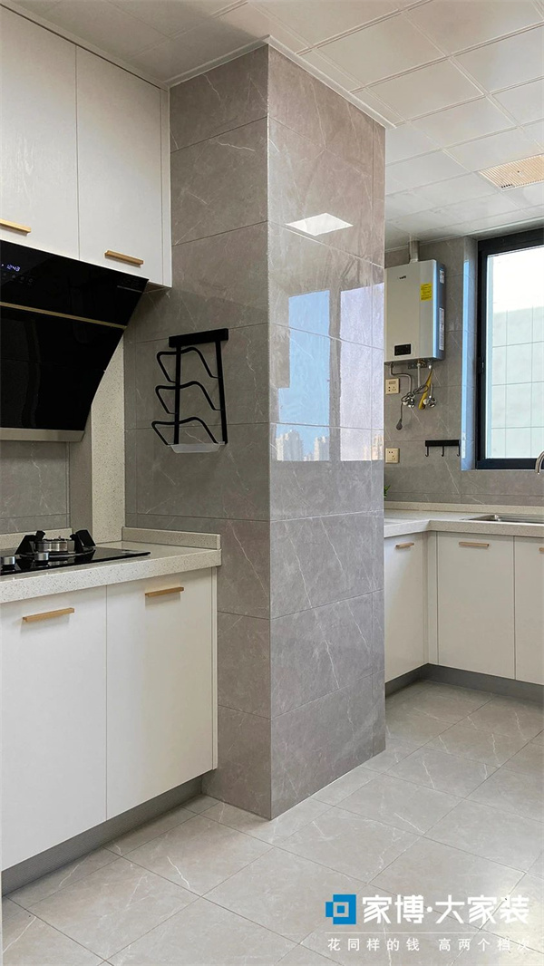 柜门上的金属拉丝把手设计,细节里充满精致感